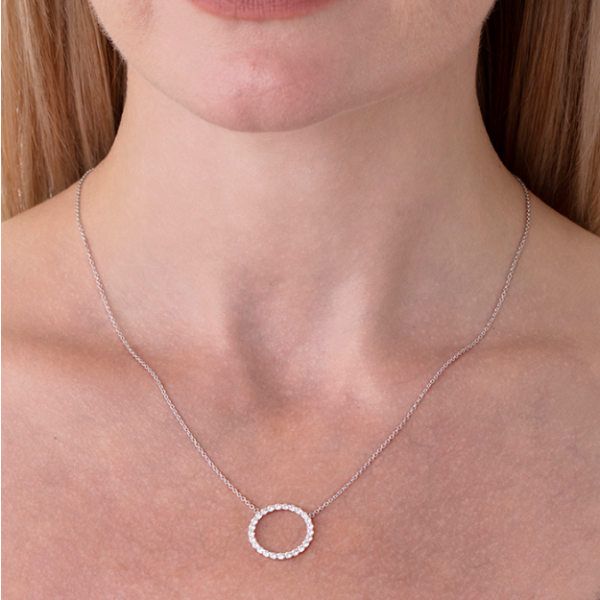18k White Gold SIGNATURE Circle Necklace LARGE 25 Round Diamonds .61-.71ctw, G-H COLOR, VS-SI CLARITY